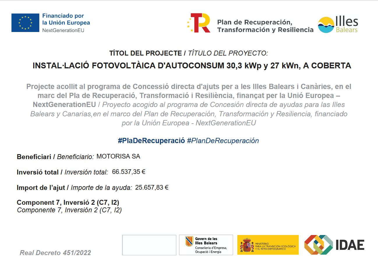 Insta-lació d'autocosum fotovoltaica de 29'7 kWp, amb inversor trifràsic de 25kW i desmantellament de cobertura d'amiant existent.